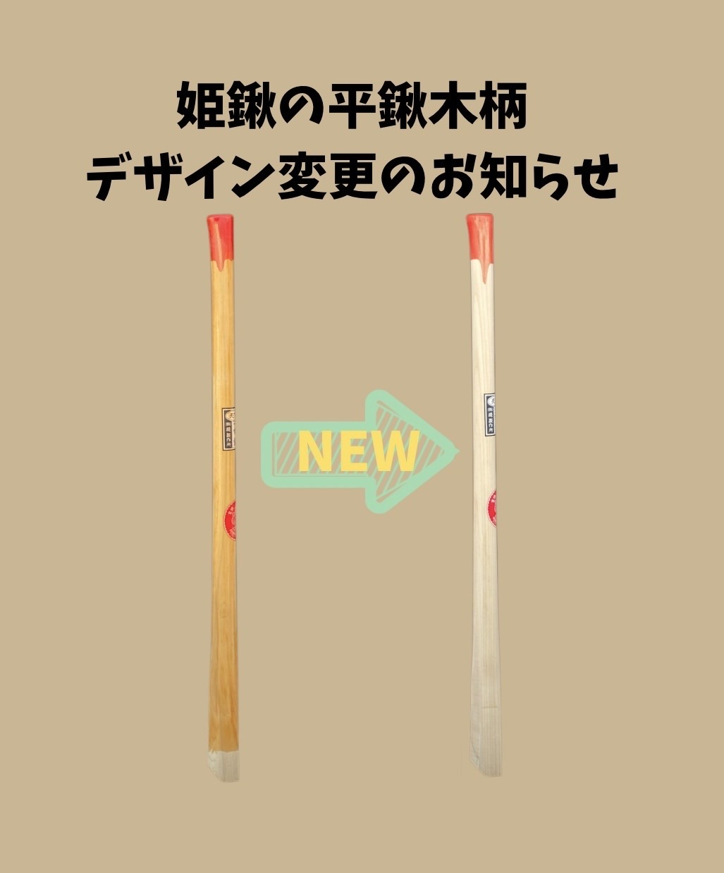 平鍬木柄の形状の変化はございませんので、新しい顔の姫鍬もご贔屓いただけましたら幸いに存じます。